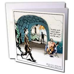 Londons Times Funny Music Cartoons - Unlikely Beggar - Greeting Cards-6 Greeting Cards with envelopes