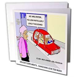 Londons Times Funny Society Cartoons - Drive By Compliments, Gangs Who Love Too Much - Greeting Cards-6 Greeting Cards with envelopes